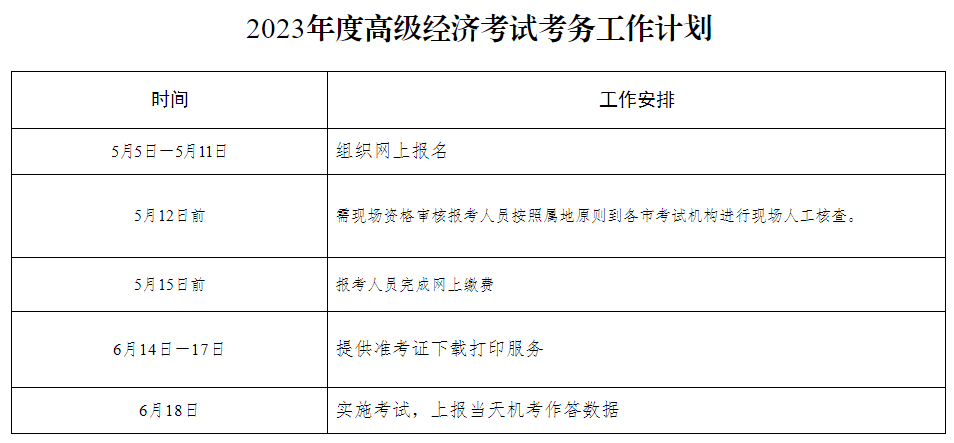 根据人力资源和社会保障部人事考试中心《关于做好2023年度高级经济专业技术资格考试考务工作的通知》(人考中心函〔2023〕24号)精神,为做好我省高级经济考试考务工作,现将有关事项通知如下: