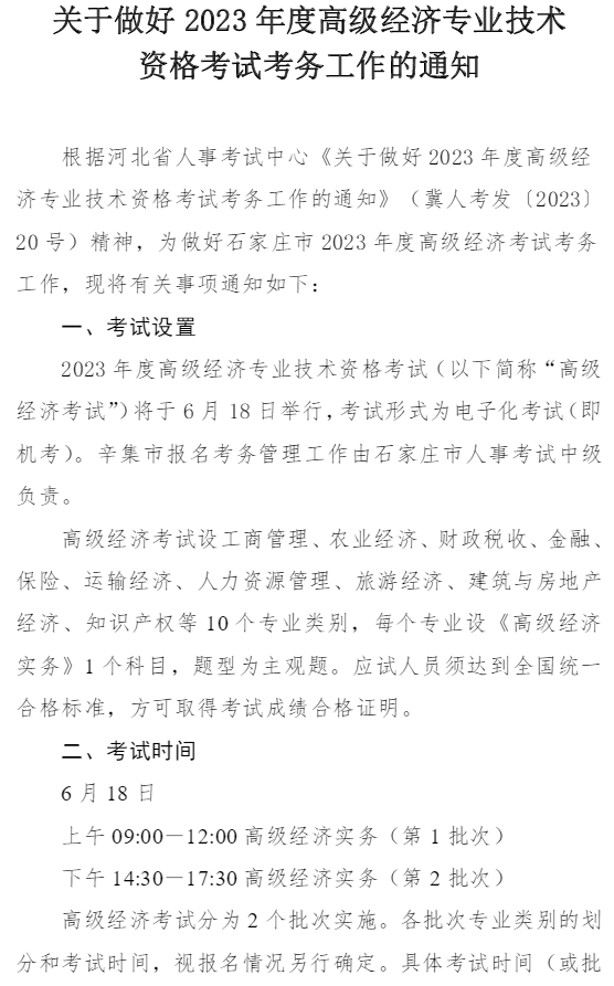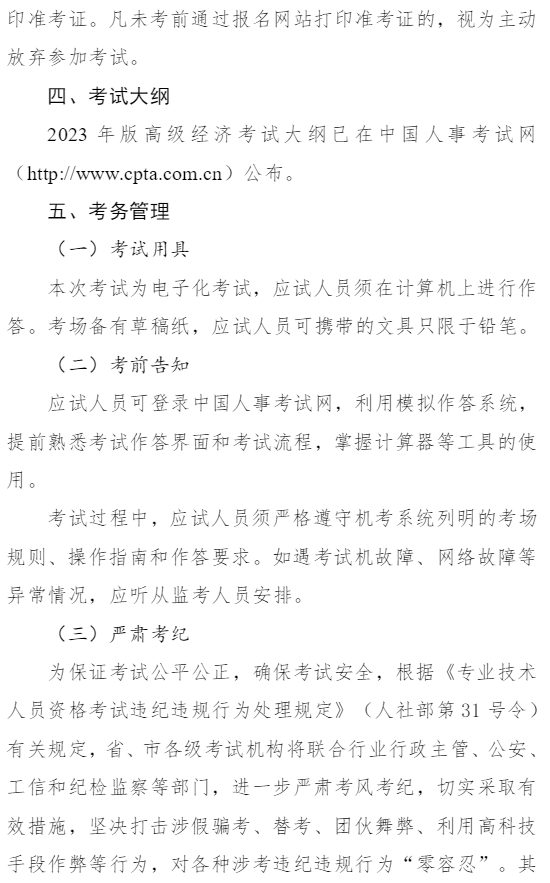 关于做好2023年度高级经济专业技术资格考试考务工作的通知