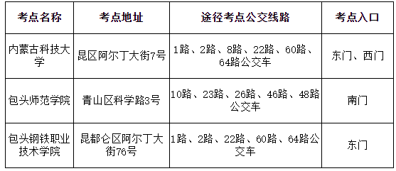 四、请提前熟悉考点地址、交通路线。本周考试考点设在内蒙古科技大学、包头师范学院和包头钢铁职业技术学院,请广大考生认真阅读准考证信息和注意事项,提前了解考点入口位置和前往路线,做好考试当天的出行安排。考试当天,考生提前规划交通出行路线,选择合适的出行方式,尽可能做到居住地与考点之间“两点一线”。为避免交通拥堵,考试当天应提前1小时到达考点,倡导考生自行赴考。为确保道路畅通,考试当天交管部门将在考点附近及道路沿线增派交警,请考生配合交警工作。