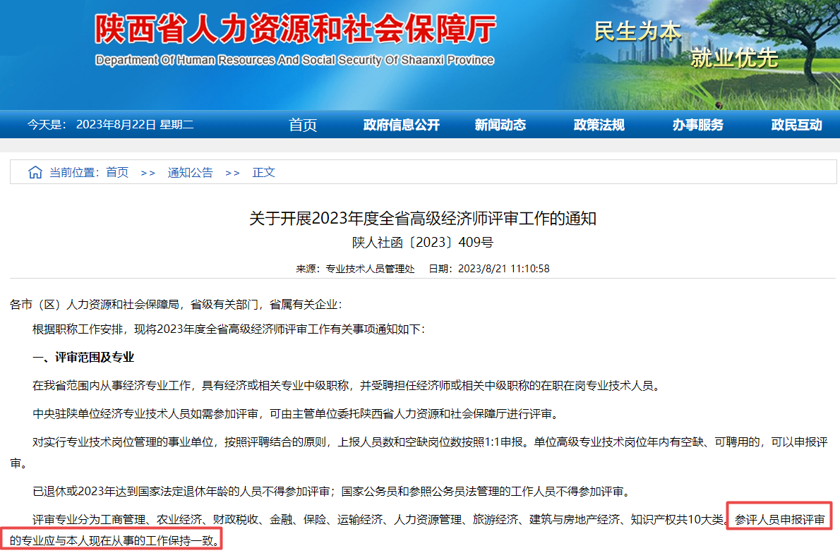 比如,有地区评审要求参评人员申报评审的专业应与本人现在从事的工作保持一致。截图如下: