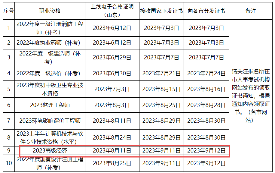 山东2023年专业技术职业资格证书发放状态发布,2023年高级经济师合格证明9月12日已向各市分发了。请关注报名所在市人事考试机构网站发布的领取证书通知,根据通知内容领取证书。