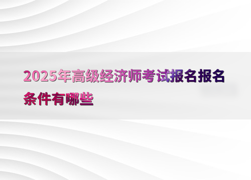 问:高级经济师考试报名条件有哪些?答:需具备相应学历和工作经验,具体条件包括大学专科学历满10年、硕士学位满5年、博士学位满2年等。