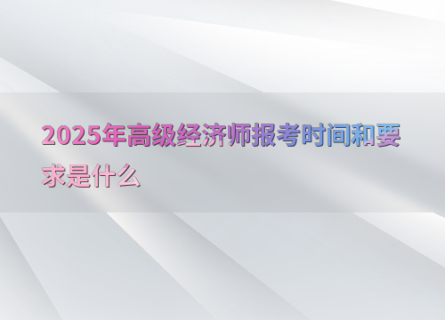 2025年高级经济师考试报名时间预计为4月9日-4月28日,各地报名开始和结束日期可能有所不同。