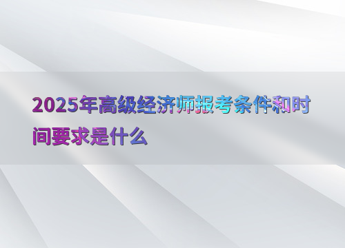 报考时间:2025年高级经济师考试报名时间预计为4月9日-4月28日,具体日期各地可能有所不同。