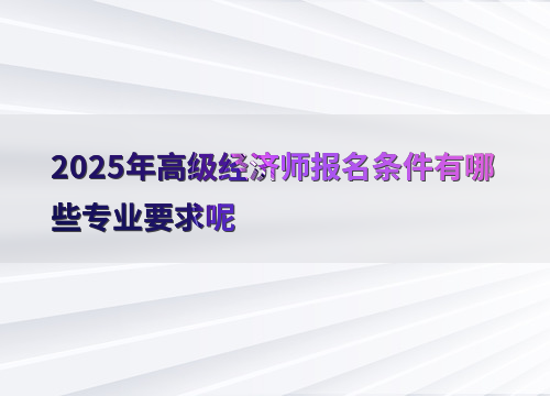 具备大学专科学历,取得中级经济专业技术资格后,从事与经济师职责相关工作满10年;具备硕士学位或第二学士学位或研究生班毕业,或大学本科学历或学士学位,取得中级经济专业技术资格后,从事与经济师职责相关工作满5年;具备博士学位,取得中级经济专业技术资格后,从事与经济师职责相关工作满2年。