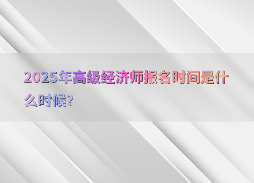 2025年高级经济师考试报名时间暂未公布,预计为4月9日-4月28日,各地报名开始和结束日期可能有所不同。
