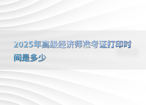 2025年高级经济师准考证打印时间因地区而异,一般在考试前一周至考试结束前均可打印。