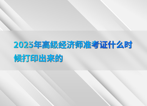 2025年高级经济师准考证打印时间因地区而异,一般在考试前一周至考试结束前均可打印。
