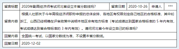 考生咨询:2020年副高经济师考试河北省设立本省分数线吗?