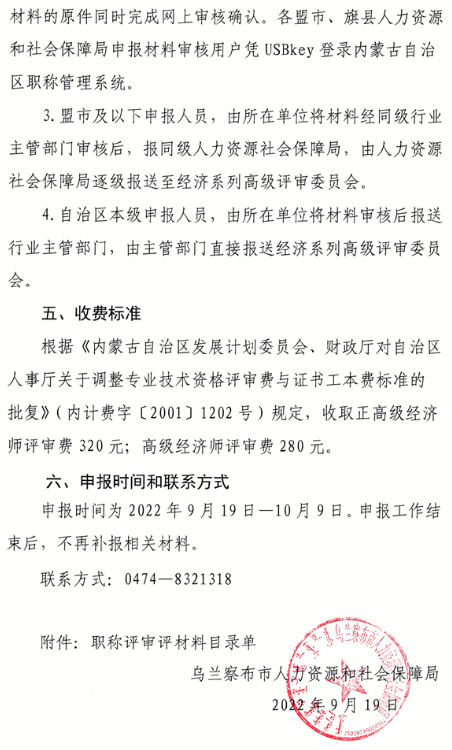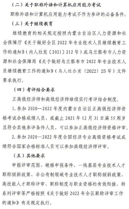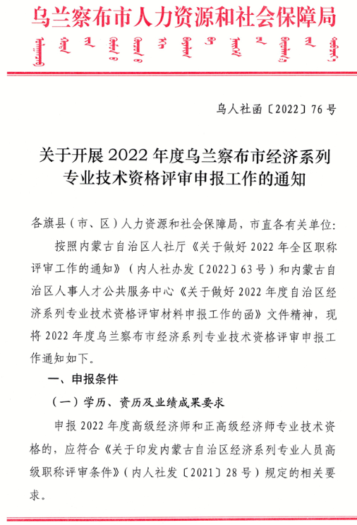 关于开展2022年乌兰察布市经济系列专业技术资格评审申报工作的通知