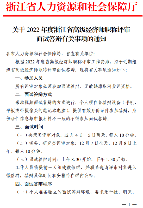 关于2022年度浙江省高级经济师职称评审面试答辩有关事项的通知