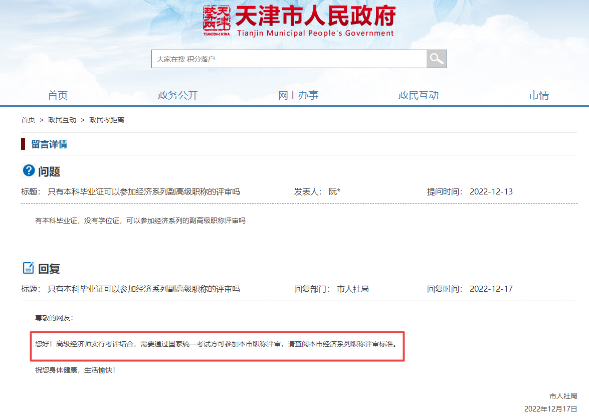 天津考生咨询:只有本科毕业证可以参加经济系列副高级职称的评审吗