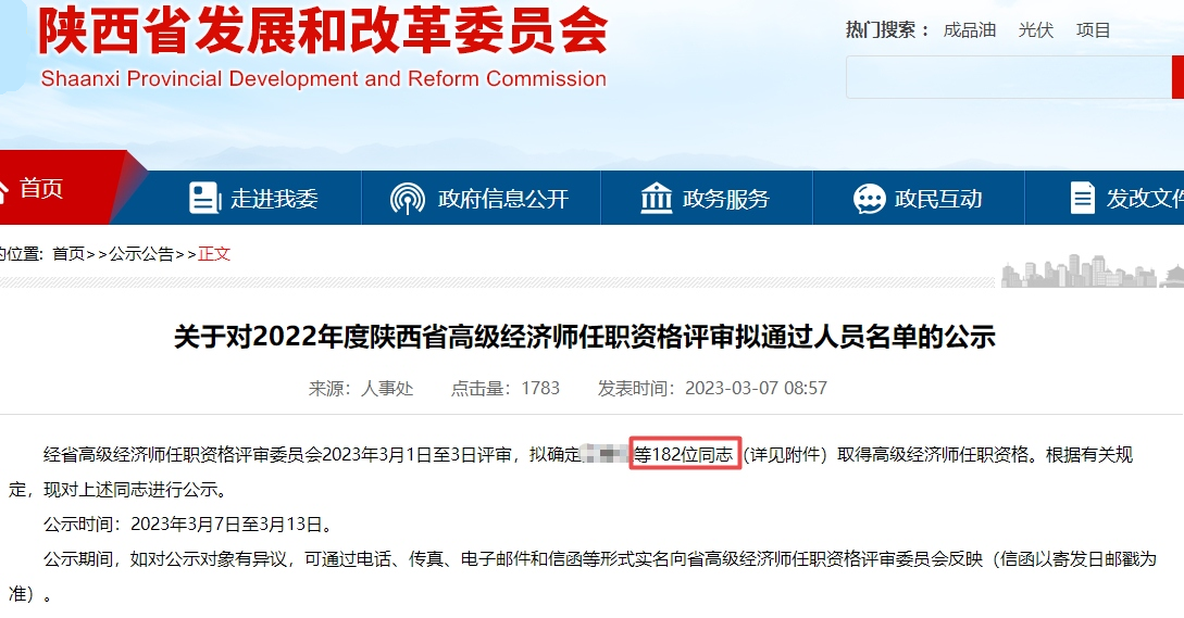 小编根据陕西省发展和改革委员会发布的“2022年高级经济师评审答辩通知”及“拟通过人员名单公示”可知,2022年陕西高级经济师评审答辩通过率高达75.5%!