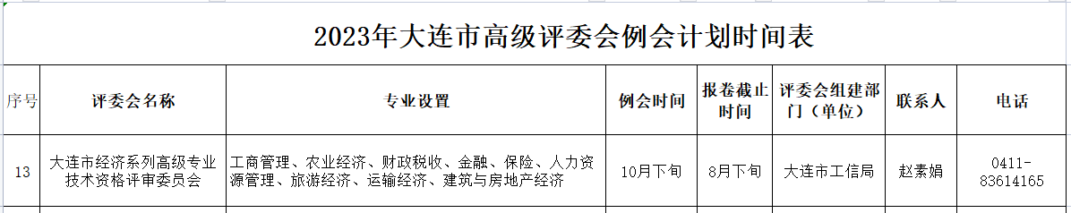 2023年大连市高级评委会例会计划时间表