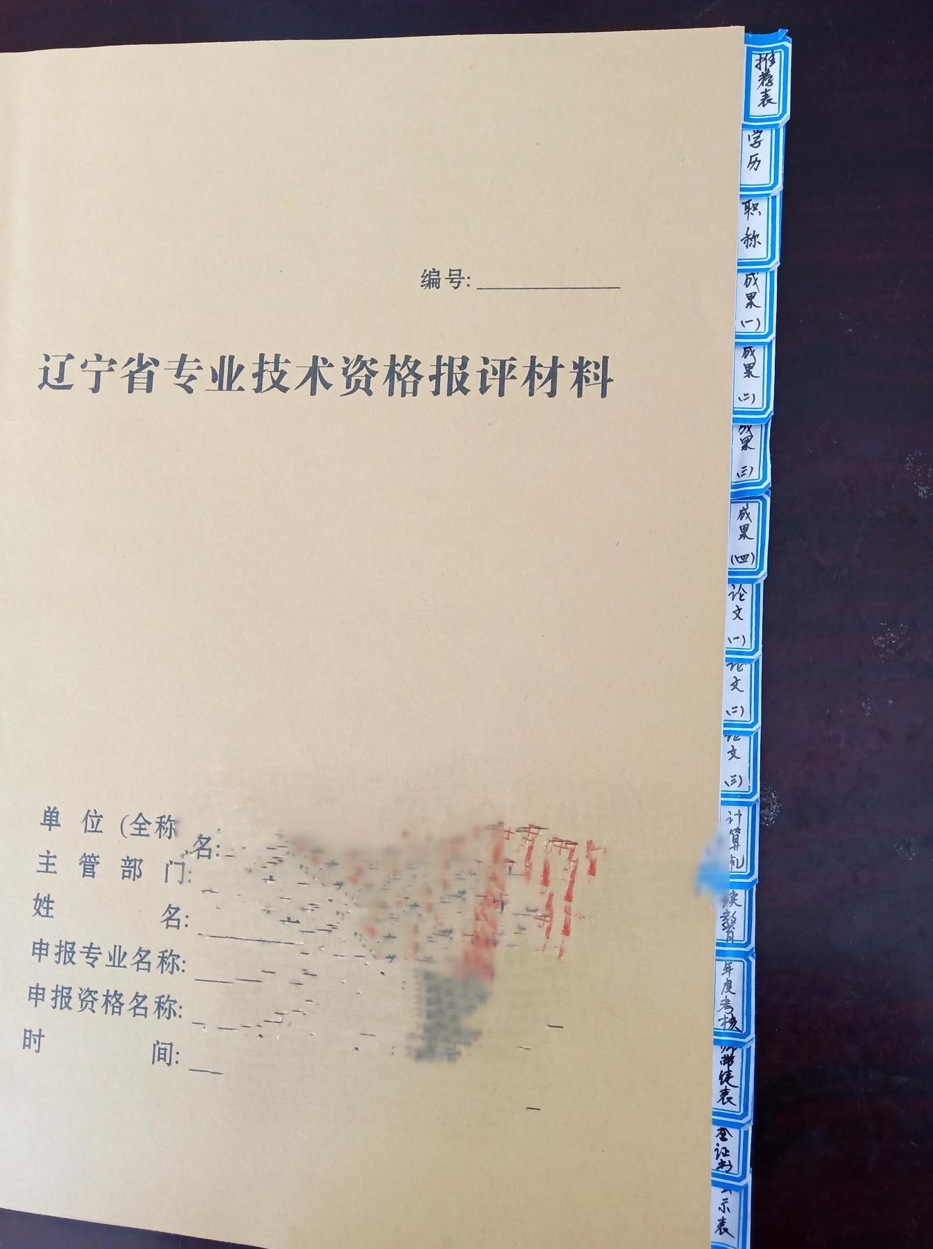 3 | 《辽宁省专业技术资格报评材料》,报评材料复印件应按规定顺序依次用装订机、胶封、线缝等形式装订成册,具体涉及内容如下: 1、资历和证明。复印件装订顺序为:身份证、学历学位证明材料、专业技术资格证书、执业资格证书、考评结合系列(专业)的考试合格成绩单、继续教育考核登记表。 注:申报人员所在单位、主管部门应通过中国高等教育学生信息网(简称“学信网”,网址:)对申报人提供的学历进行查询,并在申报人单位提供的《电子证书备案表》上签字盖章。对不属于“学信网”查询范围的学历,申报时单位应提供学籍档案中的《毕业生登记表》原件及复印件1份,并由申报人所在单位和区市县职称主管部门分别签字盖章。 2、业绩成果。提交任现职以来的经历(能力)和业绩成果(如作品、成果、奖励)、图纸、图签等证书复印件(原件备验)及证明材料原件。 3、论文。论文不作为申报职称必备条件的系列(行业),可以无须提供,已发表的论文按申报系列(行业)评审标准的要求提供相关检索,进行核验。 | 1份 |