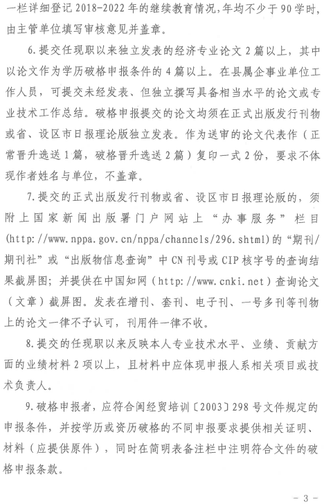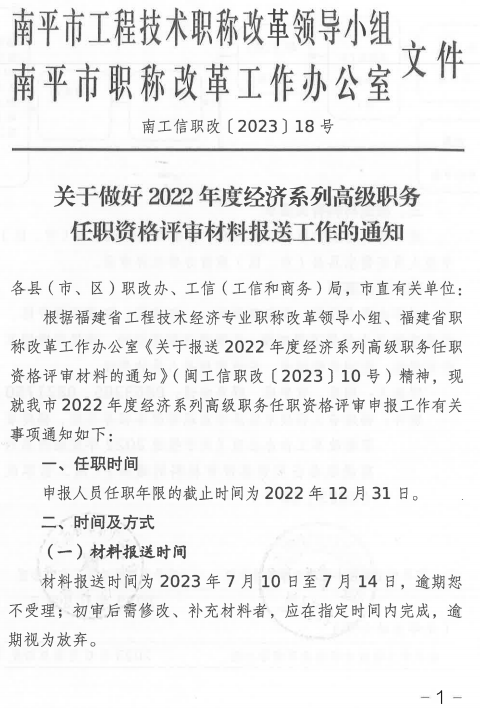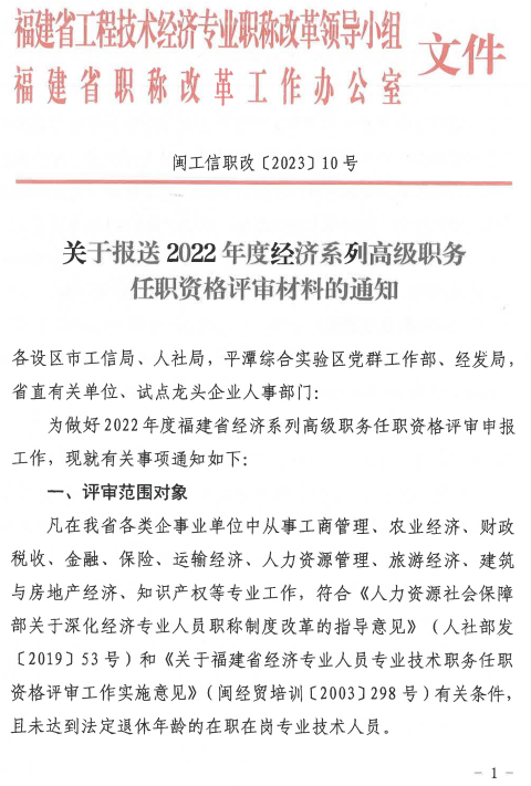 做好2022年度经济系列高级职务任职资格评审材料报送工作的通知