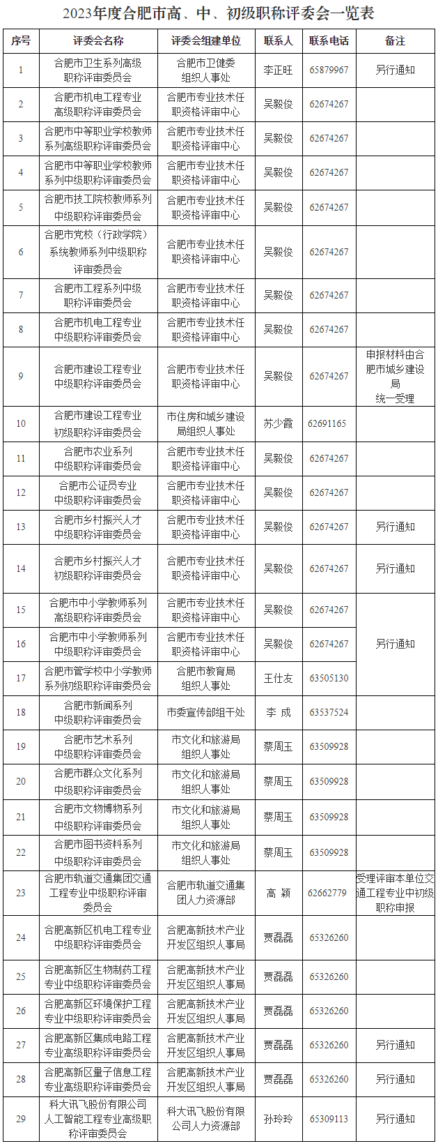 附件:1.2023年度合肥市高、中、初级职称评委会一览表