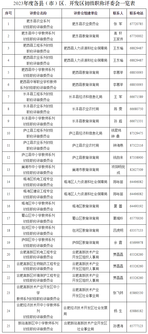 参加合肥市各系列(专业)职称评委会评审的(评委会组建单位及联系方式详见附件1),申报有关事宜如下: