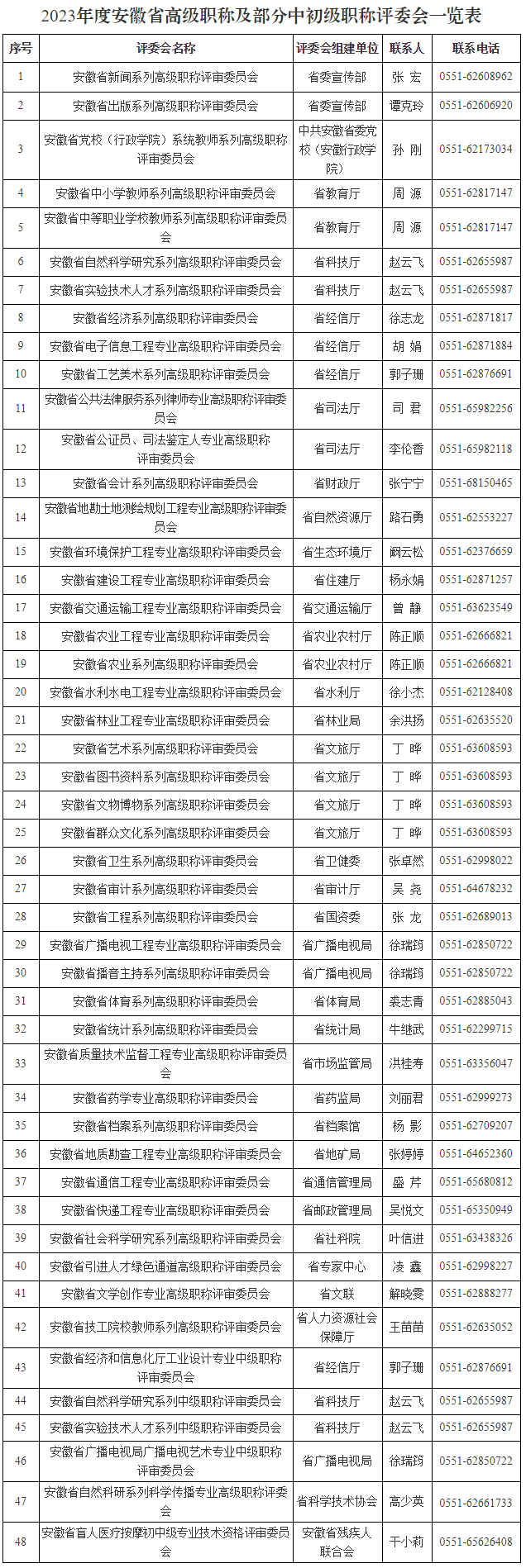 3.2023年度安徽省高级及部分中初级职称评委会一览表