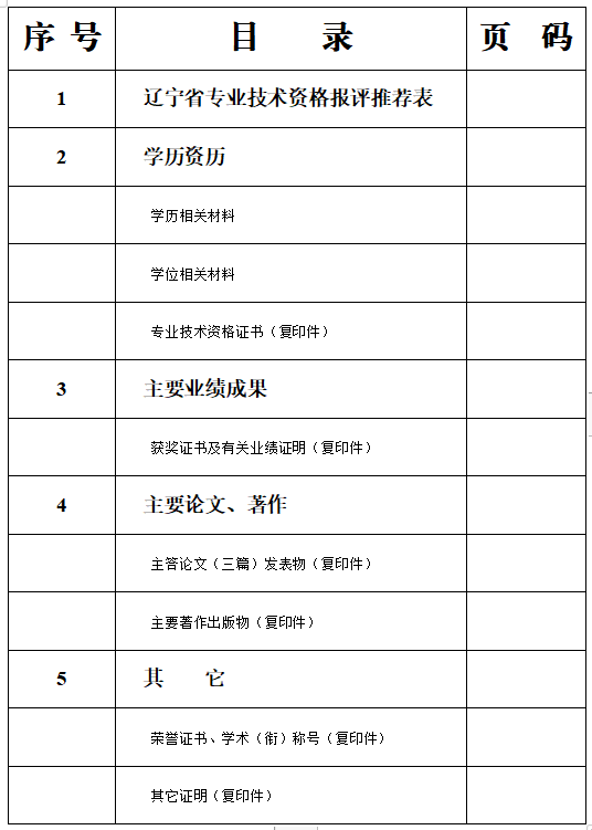 4.此材料仅供评定专业技术资格使用。申报人须按目录明细、次序将报评材料装订成册,并填写页码。
