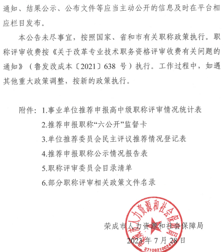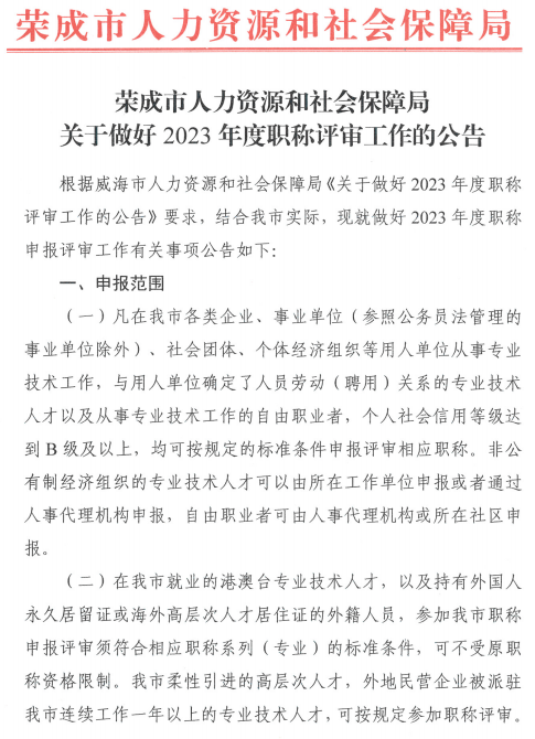 荣成市人力资源和社会保障局关于做好2023年度职称评审工作的公告