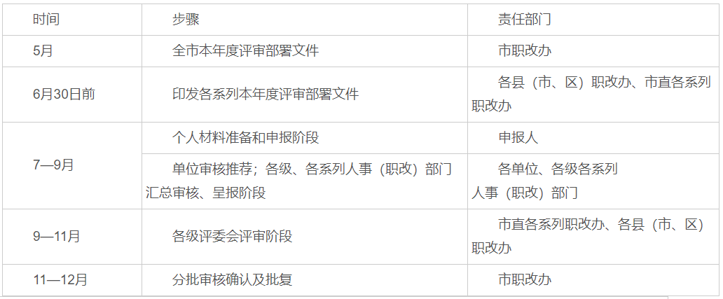(四)评审时间安排。各县(市、区)、市直各系列(行业、单位)职改办要及时研究确定本地、本系列中初级专业技术资格评审工作安排,于6月30日前将本系列评审部署文件(word版及盖章扫描pdf版)报送市职改办备案(电子邮箱:lb4278515@163.com),并通过在来宾人才网及单位网站等多种形式对外宣传发布。各评委会原则上于11月底前完成评审、复核及结果公示等工作,12月底前完成评审结果报批手续。