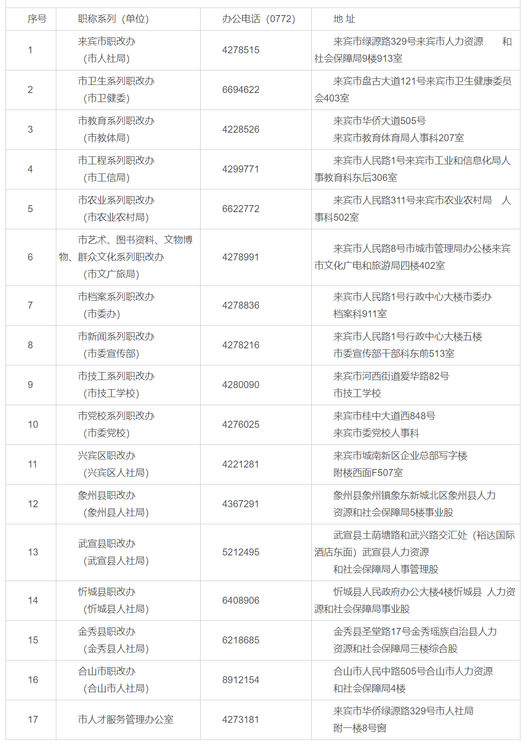 附件4:2023年来宾市各级、各系列职改办通讯录