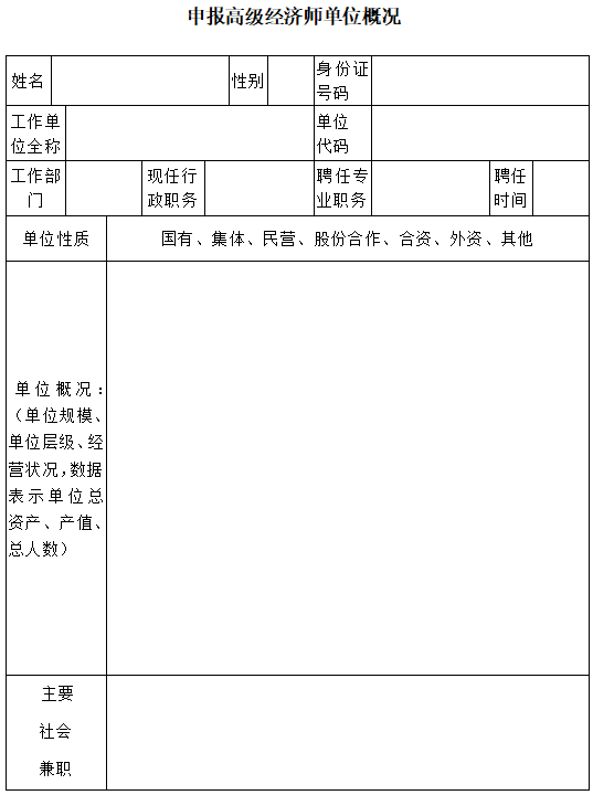 上海申报高级经济师单位概况怎么写?快来了解!可以现在下表的提示来填写哦~