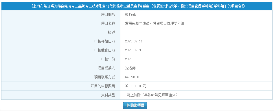 (1)登录上海市职称服务系统(),在“高级职称评审通知”【经济类】栏目点击“工商经济(或建设交通经济、商务经济、综合经济)专业评审通知”,然后,选择申报的专业学科组,点击确认“申报此项目”;