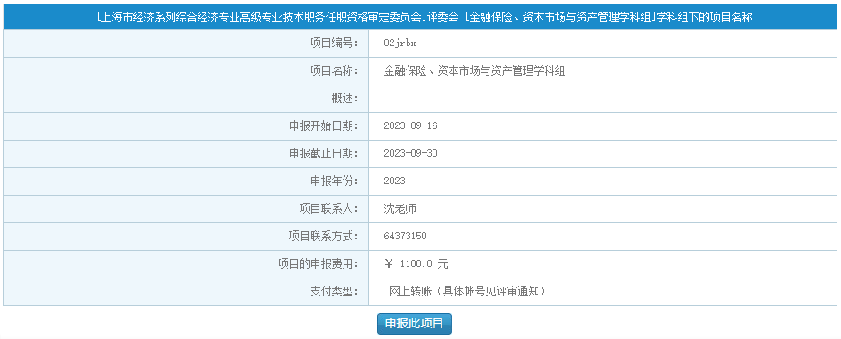 2023年度上海市经济系列高级职称资格实行网上申报。