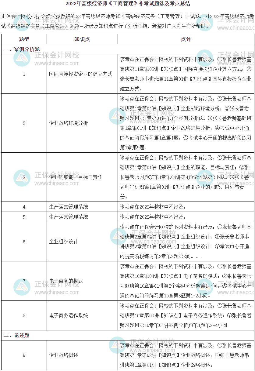 正保会计网校根据学员反馈的2022年高级经济师补考《工商管理》试题,对2022年高级经济师补考《工商管理》试题所涉及知识点进行了分析总结,希望对广大考生有所帮助。