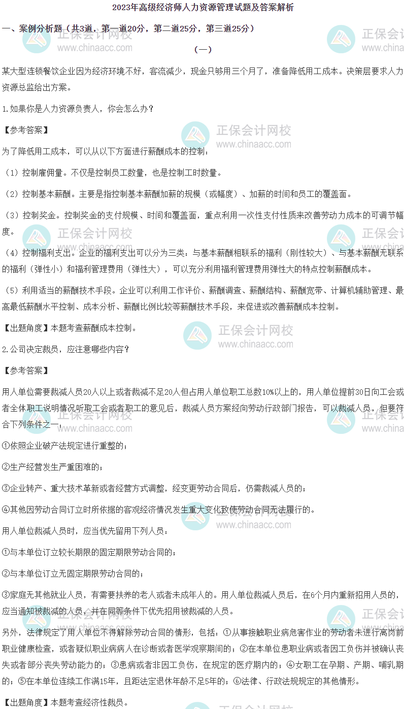 2023年高级经济师人力资源管理考试已结束,正保会计网校根据学员反馈收集整理了2023年高级经济师人力资源管理试题及答案解析(考生回忆版),供大家参考!
