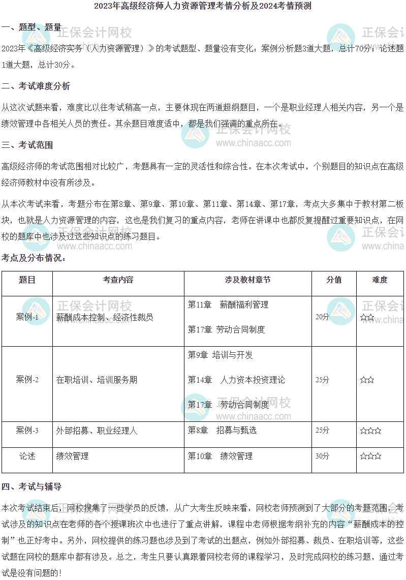 2023年高级经济师人力资源管理考试已经结束,正保会计网校教研团队根据考生回忆内容,梳理了2023年高经人力资源管理试题,对考情进行了详细的分析,希望能对备考2024年高级经济师考试的朋友们有所帮助!