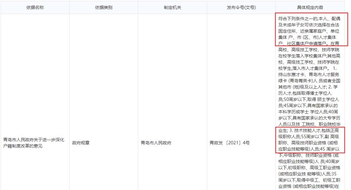 依据《青岛市人民政府关于进一步深化户籍制度改革的意见》可知,符合下列条件之一的,本人、配偶及未成年子女可依次选择在合法固定住所、近亲属家庭户、单位集体 户、市 (区、市)人才集体户、社区集体户申请落户。其中包括第三项条件为技术技能人才:55周岁以下,副高级职称、高级技师职业资格 (或相应职业技能等级)人员!而高级经济师考试+评审通过后将获得副高级职称,所以有高级经济师职称等同于副高级职称!相关截图如下: