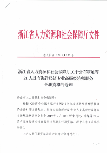 摘要:舟山市公布21人具有海洋经济专业高级经济师职务任职资格。