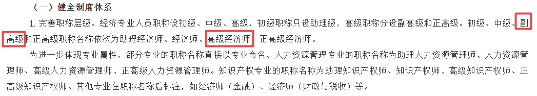 网校答疑:根据<人力资源社会保障部关于深化经济专业人员职称制度改革的指导意见>可知,经济专业人员职称设初级、中级、高级,初级职称只设助理级,高级职称分设副高级和正高级。初级、中级、副高级和正高级职称名称依次为助理经济师、经济师、高级经济师、正高级经济师。