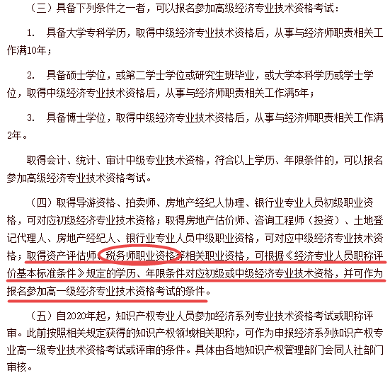中级经济师和税务师报名高经的年限区别: