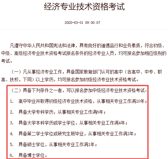 附中级经济师报名条件: