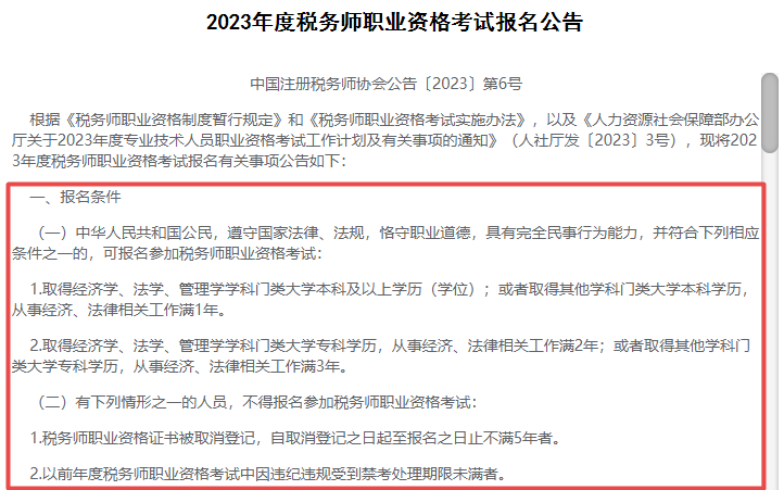 附税务师报名条件(参考2023年报名公告):