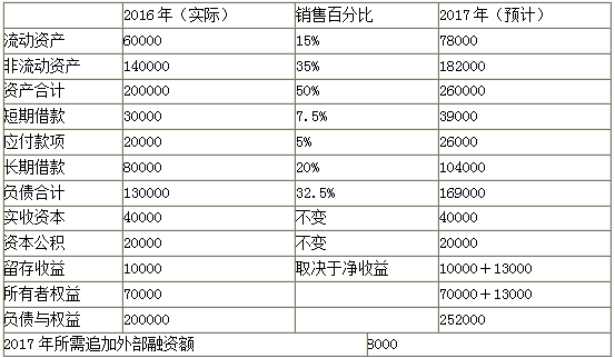 同时,财务经理认为在保持现有盈利模式、资产周转水平等状态下,公司的预期销售净利润率(税后净利/销售收入)为5%,且董事会设定的公司2017年的现金股利支付率这一分红政策将不作调整,即维持2016年50%的支付水平。
