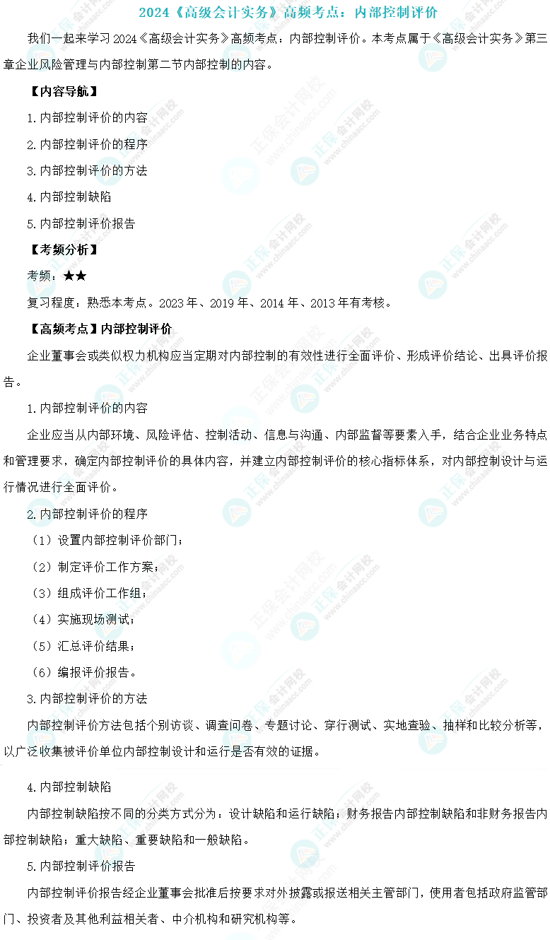 2024高会考试时间为5月18日,现在正是紧张的备考阶段,各位考生应了解考试考点,提高复习效率!正保会计网校为各位备战高级会计师考试的考生带来了《高级会计实务》高频考点,跟上老师的步伐按计划完成学习,全面备战5月考试!