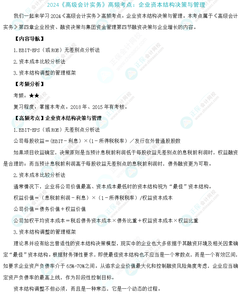 2024高会考试时间为5月18日,现在正是紧张的备考阶段,各位考生应了解考试考点,提高复习效率!正保会计网校为各位备战高级会计师考试的考生带来了《高级会计实务》高频考点,跟上老师的步伐按计划完成学习,全面备战5月考试!