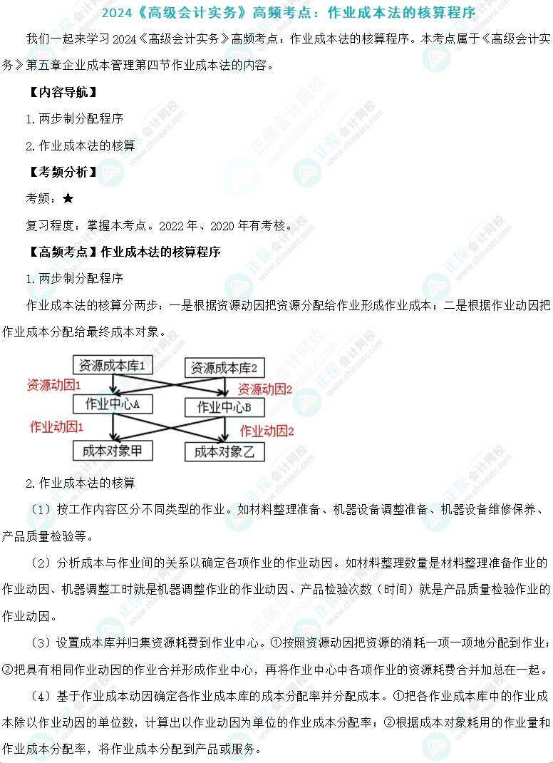 2024年高级会计师考试高频考点:作业成本法的核算程序