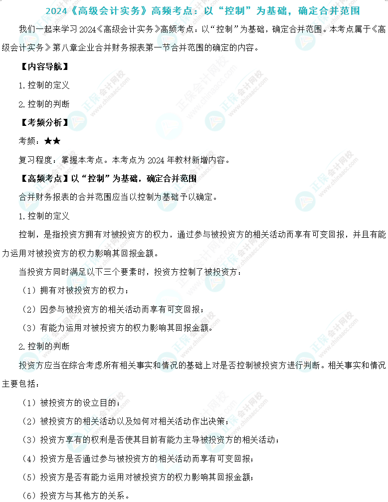 2024高会考试时间为5月18日,现在正是紧张的备考阶段,各位考生应了解考试考点,提高复习效率!正保会计网校为各位备战高级会计师考试的考生带来了《高级会计实务》高频考点,跟上老师的步伐按计划完成学习,全面备战5月考试!