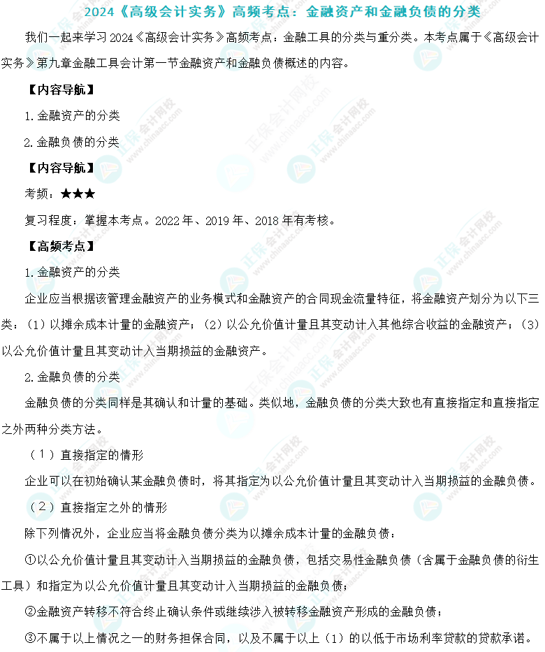 2024年高级会计师考试高频考点:金融资产和金融债券的分类