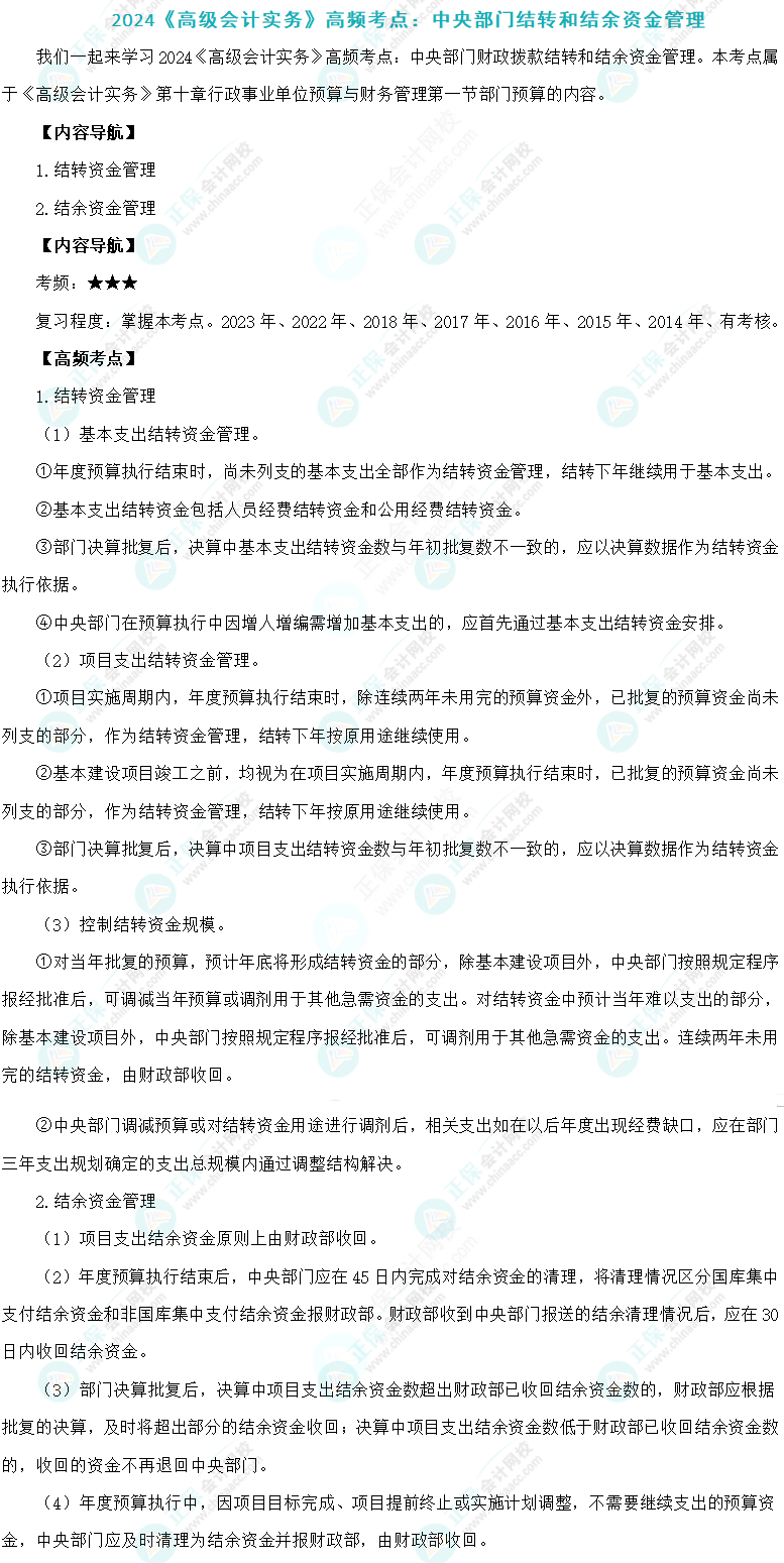 2024年高级会计师考试高频考点:中央部门
