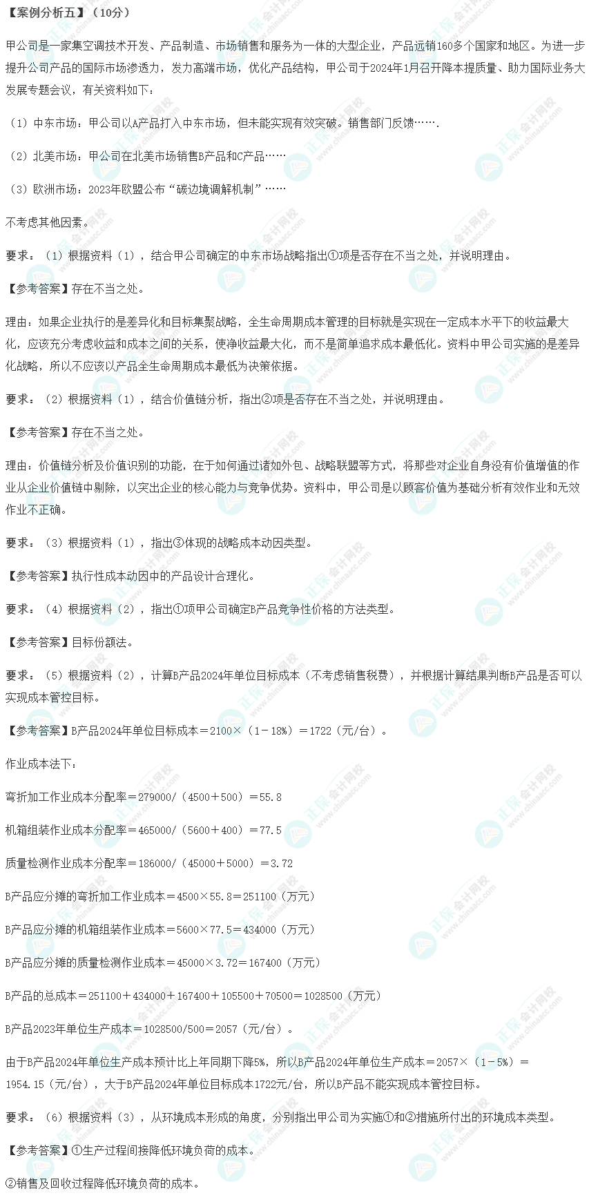 【辅导书点评】2024年《高级会计实务》案例分析第5题(考生回忆版)