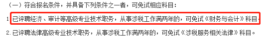 翻看税务师报名条件,小编发现,有高级会计职称且从事涉税工作满两年即可免试《财务与会计》科目。《财务与会计》与高级职称考试内容非常贴近,我们知道,《高级会计实务》采用开卷考试,主要考察会计师的实践操作能力,考完高级会计师趁热再考税务师,可谓锦上添花。