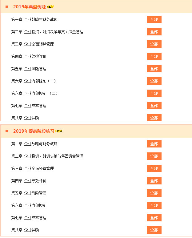 网校我的网校我的家“我的题库”高级会计实务开通2019年典型例题第1-8章,开通2019年提高阶段练习第1-8章。