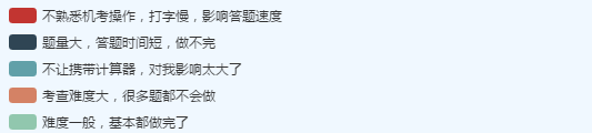 题量大,又无法携带计算器,不熟悉无纸化考试系统,导致答题时间不足会对高会考生的发挥产生很大的影响。